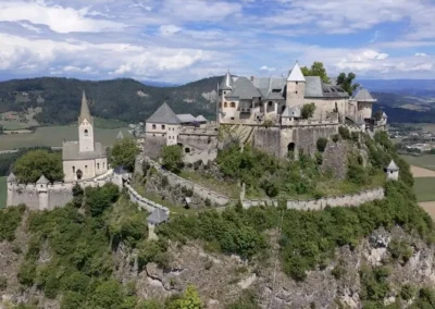Drugi dzień jest pętlą prowadzącą między kolejnymi atrakcjami regionu. A jeśli atrakcje Karyntii to mowa z pewnością o jeziorach, górach i zamkach! Na pierwsze danie Zamek Taggenbrunn w którego ruinach znajduje się winiarnia posiadająca na sprzedaż lokalne wino. Dalej malutkie jezioro Langsee i drugie danie główne: Zamek Hochosterwitz. Wspinaczkę na średniowieczne mury zostawiamy chętnym, a zdecydowanie warto! Twierdza znajduje się na 175-metrowej skale co sprawia, że widok z góry jest zachwycający. Dalej jedziemy doliną, wzdłuż małej górskiej rzeki Gurk kończąc dzień w Klagenfurcie.